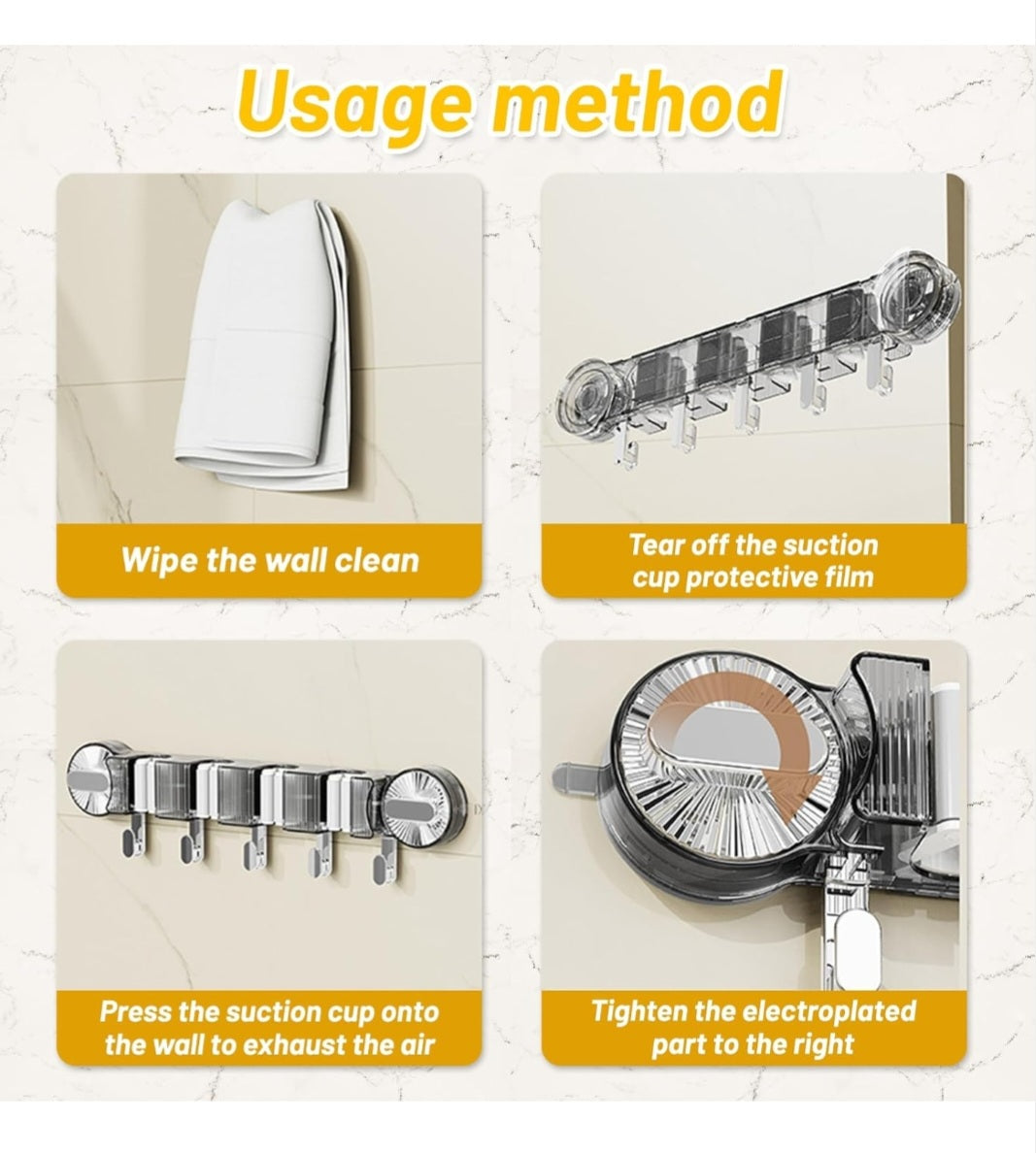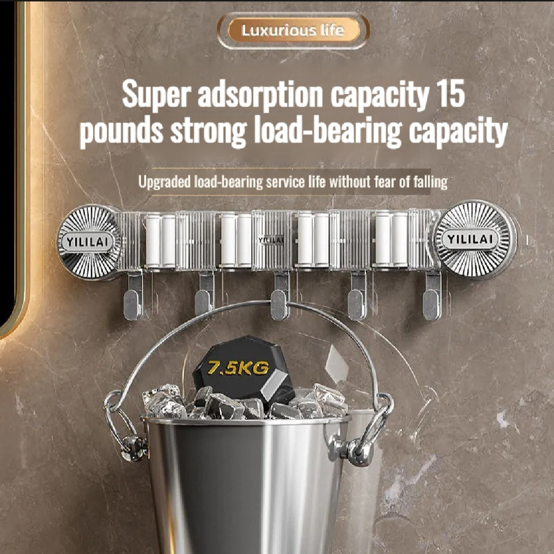 ⚙️ Product description Strong Anti-Slip Grips: Securely holds up to 7.5kg per slot without slipping.Waterproof & Rust-Resistant: Ideal for humid areas like bathrooms or kitchens.Self-Adhesive & Drill-Free Installation: No tools needed — just peel, stick, and press.Premium ABS Material: Durable, lightweight, and built to last.Multi-Functional Hooks: Hang brushes, towels, dustpans, or other essentials easily.Minimalist Design: Blends perfectly with modern home interiors.